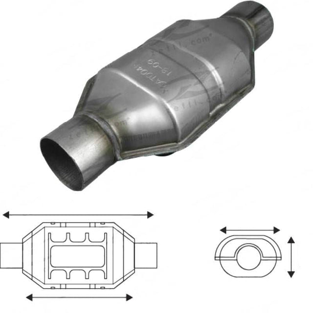 Petrol Oval Ceramic Catalytic Converter - Euro II, Inlet/Outlet Diameter 50.8mm(2"), CPSI 400, Capacity Up to 2.0L, Standard body